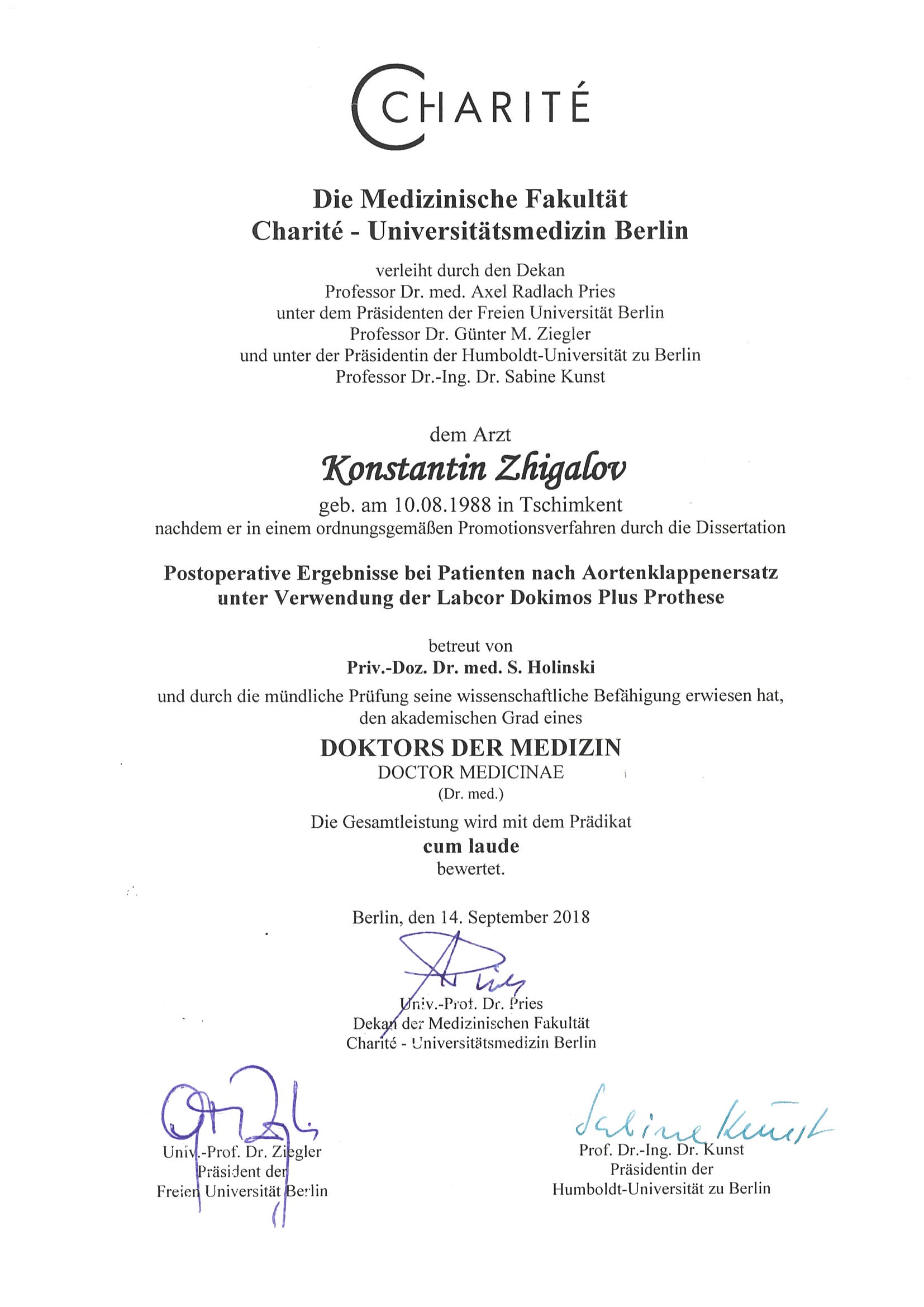 Врач-кардиохирург с многолетним опытом работы в университетских клиниках Германии. Успешно защитил диссертацию (PhD) в одной из ведущих клиник Европы — Charité – Universitätsmedizin Berlin.